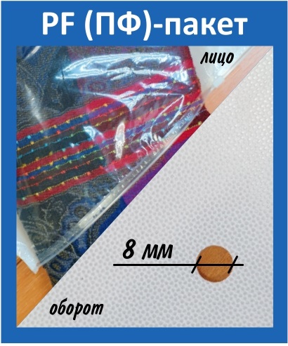 ПФ-пакет – это двустороннее изделие, одна сторона которого изготавливается из прозрачной полимерной пленки, а другая – из пленки белого либо черного цвета. На оборотной стороне поверхность материала фактурная – это необходимо, чтобы облегчить складирование товара и избежать скольжения.